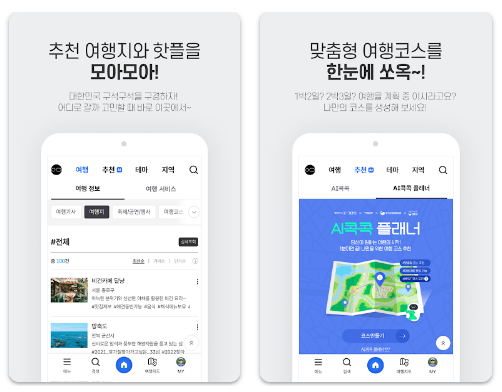 앱을 실행하면 메인 화면에서 다양한 여행 콘텐츠를 확인할 수 있습니다. 사용법은 직관적으로 구성되어 있어 처음 사용하는 분들도 쉽게 적응할 수 있습니다.
