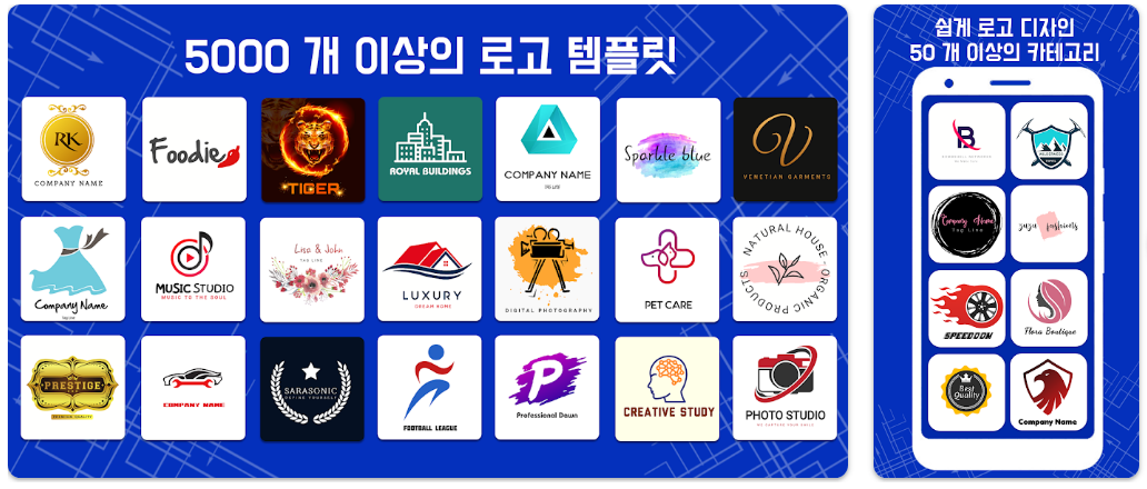 - 방대한 라이브러리: 5000개 이상의 업종별 오리지널 로고 디자인 템플릿을 수록하고 있습니다.