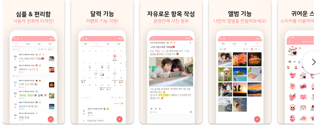 최근에는 스마트폰을 활용해 언제 어디서나 간편하게 일기를 작성할 수 있는 다양한 앱들이 출시되어 있습니다. 각 앱은 사용자의 취향과 필요에 맞춰 각기 다른 디자인과 기능을 제공하며 기록의 즐거움을 더해줍니다.