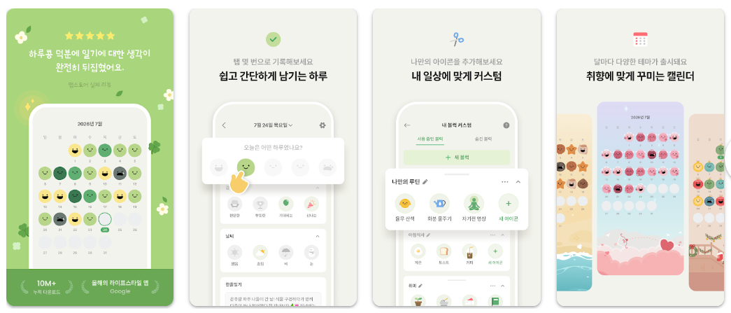 - "종이에 쓸 땐 힘들었는데 아이콘만 누르면 되니 한 달 넘게 매일 기록 중이라 신기해요."